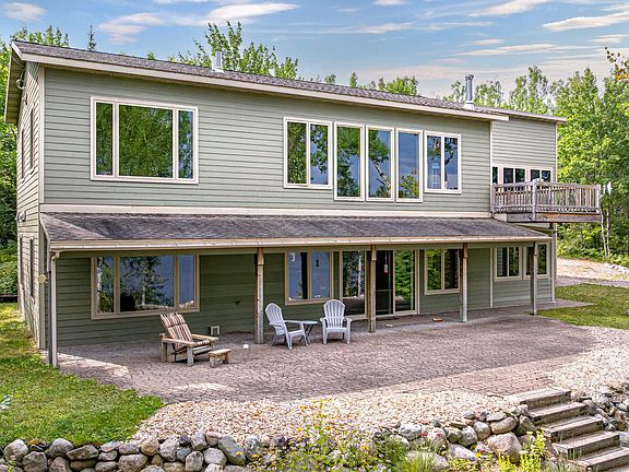 Located a short drive east of Ely is this magnificent 2 story lake home on Fall Lake! Fantastic views of Fall Lake...including views right into the BWCAW from your patio! This lovely home, built in 2012, has 3 bedrooms and 3 baths and is on a very scenic wooded parcel with approx. 1.5 acres and approx. 200 feet of shoreline on this fantastic "edge of the Boundary Waters" lake! Enjoy elevated views of the lake, see eagles frequently soaring overhead and roosting on the state owned island out front, and paddle or motor right into the BWCAW right from your dock! The main floor has 9 foot ceilings and a large open concept living and dining room that flows right into the large kitchen with tons of counter space and top-quality cabinets. Enjoy the fantastic views out the tall windows and sliding glass door toward the large patio and lake. Also, a main floor bedroom that faces the lake with a private full bath with jacuzzi tub! Half bath, large utility room with washer and dryer, and 4 season porch round out the main floor. The 2nd floor has a large great room with pine vaulted ceilings that faces the lake and an additional back portion of it with a portable sliding wall that can be used to make it a private room, or extra sleeping space. 2 more large bedrooms and another full bath are here as well. Plus a large 2nd floor deck! Also a huge storage room over the attached garage that is great for storing so many things! Other features include the attached 2 stall garage, a sauna behind the house, large patio and entertaining area facing the lake, maintenance free top-quality siding, nice stairs to the lake-where there is a large dock and boat storage! This property would be great to live in year 'round, or use as your 4 season Ely area getaway. Drilled well, mound septic system, private driveway, storage shed. Fall Lake is 6 miles long and the northern quarter of the lake is in the famous Boundary Waters Wilderness Area, with motors being allowed on all of Fall Lake (25 HP in the BWCAW portion and unlimited on the rest of the lake). From Fall, you can wheel portage to Basswood Lake.. and the US/Canada border. Great fishing! Property faces N/NW and allows great viewing of the active northern lights activity. This is a great property just 10 minutes from Ely! Check out this Youtube Channel for footage of the night sky(including some amazing Northern Lights!) of this listing: https://youtube.com/@larryolson6464?si=6Wa-Cg7a-Lrk7vRT