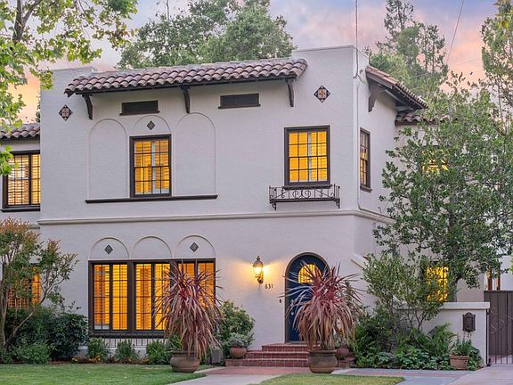 Comprehensively updated for your move-in ready enjoyment! Discover 631 Coleridge: a charming Spanish-style home on Old Palo Alto's most prestigious street. This expansive 10,649 sq ft lot with mature trees is on a peaceful cul-de-sac, free from thru traffic. Inside, enjoy hardwood floors, 9-foot ceilings, and beautiful wavy glass windows. The cozy living room features a wood-burning fireplace, and the bright office and dining room offer stunning views. The entirely renovated kitchen boasts a wraparound peninsula, bar seating, custom cabinetry, and brand new appliances. The upper level includes a luxurious primary suite, three spacious bedrooms, two additional bathrooms, and a flexible sunroom. Outside, relax on the wraparound deck, pergola dining area, or in the hot tub under the majestic Oak tree. The private backyard includes a carriage house with a kitchenette and full bath, ideal for an office or guest space. Don't miss this rare opportunity! Easy access to downtown Palo Alto shops and restaurants, Stanford University, Silicon Valley employers, and award-winning Palo Alto schools. Visit today and experience the best of Old Palo Alto living.