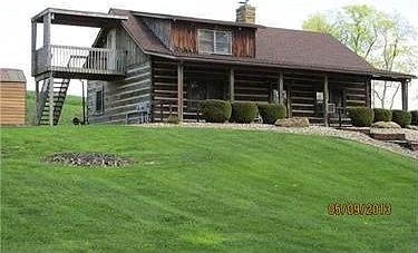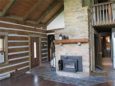 log home built by appalachian homes,stone fireplace in living room with woodburning insert,cathedral ceiling ,first floor laundry with cermic floor,living room hardwood floors,kitchen cermic floors,three bedrooms and three full baths, currently apartment in lower level the seller rented for $600 per month,vacant now,was atriplex at one time,wraparound porch ,stainless appliances,1.71 acres,very private