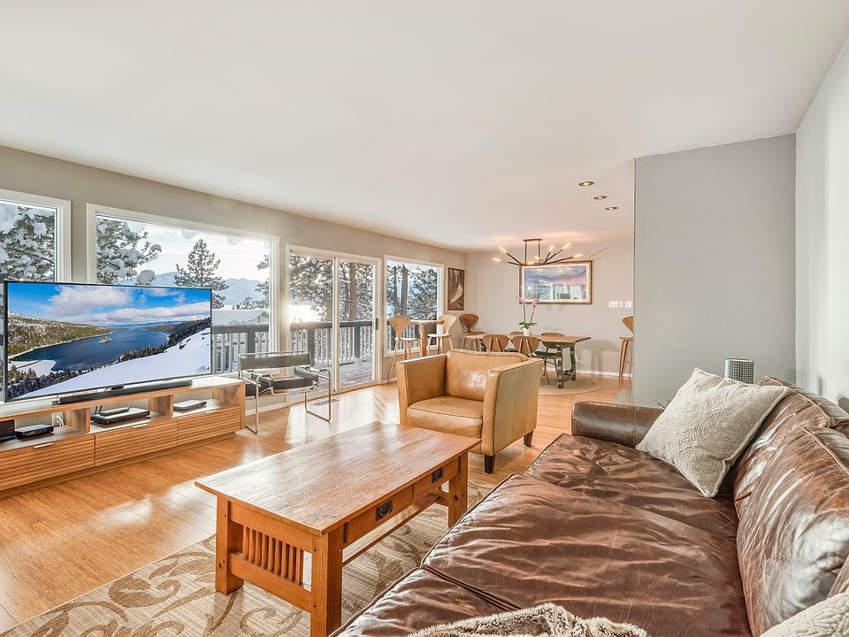 Single level living and fully remodeled. These are 2 of my favorite things! Clean lines and attention to detail highlight this lake view home. Hardwood floors, new fireplace, vinyl windows. No work necessary and plenty of storage for your summer and winter toys. Close to entertainment, skiing, and lake activities. This home is move in ready, a rare find in lake tahoe at this price! 2 car attached garage and parking for 3 additional vehicles.