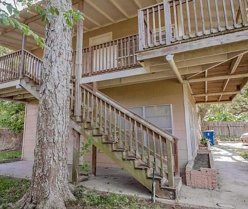 The possibilities are endless for this two story home! Having two separate living spaces with two separate entrances, this home could create extra rental income for the buyer. You could also run your business from the bottom floor and have living quarters on the top floor. Or....use the bottom floor as a mother-in-law suite. So many possibilities!! Enjoy the peaceful evenings sitting on the spacious balcony overlooking the beautiful trees. This property is priced to sell!