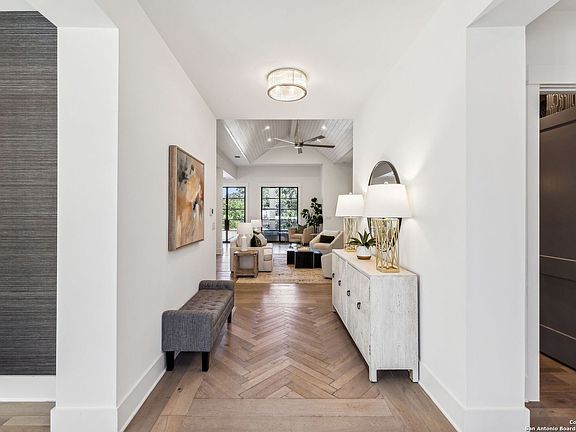 Don't miss this well-constructed, transitional style masterpiece in Terrell Hills. This 2018-Dabney-built, +\- 5230 square foot home features 6 bedrooms and 5 1/2 baths with high-design contemporary touches throughout. The impressive interior boasts high ceilings, large rooms, wood, marble and tile flooring, and new carpeting with a tasteful color palette tying this large, modern family home together. A dramatic entry leads you straight into a grand, chef's kitchen with top-of-the-line appliances, walk-in pantry, island and wet bar with two wine refrigerators that seamlessly shares space with the home's open family room with built-ins and a gas fireplace. On top of a breakfast bar that's part of the kitchen, the home features two additional dining rooms - a formal dining room just off the entry and an informal breakfast room space, just off the family room and kitchen. The primary suite is downstairs with large, marble-lined bath featuring dual vanities, tub, separate shower and large walk-in closet. A flex space is located adjacent, offering up the possibility of office, study or home gym just off the entry. The first floor also has a secondary bedroom with sitting room and a separate entrance and large mud and utility rooms. The home's grand staircase leads up to a large game room with floor-to-ceiling built-ins and mini-refrigerator. Four additional, ample-sized bedrooms flank that space, two with private bathrooms and two that share a Jack-and-Jill. Outside, there's a resort-style backyard that boasts a striking pool with waterfall and expansive covered patio with outdoor kitchen and fireplace. Sitting on a nice-sized 0.383 acre lot in an exceptional location, the home also has a 3-car garage and circular drive. It has been freshly painted with new carpeting, making it ready for move in today. Book your showing right away!