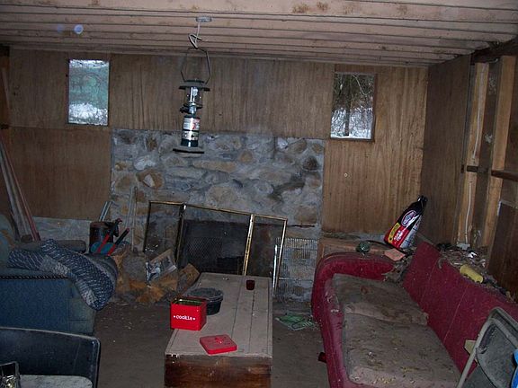 NICE LOT with a rickety cabin. No foundation, barely supported & very crooked. No power, no water, no septic. The lot is quite gentle and has newer cabins for neighbors.