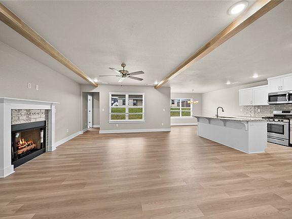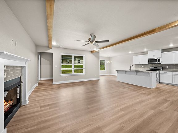 fireplace and custom stained beams. One story home with eat-in kitchen overlooking backyard & covered patio. Kitchen has tons of counter space with large island, granite countertops, gas range, cabinets with storage and pantry. Open concept that's perfect for entertaining. Spacious master bedroom with large master bathroom. Master bath has double sinks walk-in shower, tub and walk-in closet. Great backyard on a nice flat lot! Perfect location with easy access to Delford Rieff Park, Prairie Grove Aquatic Park and Highway 62.