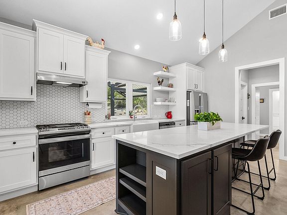 Welcome to 631 Lakeside Dr. This Dog Trot Style home was built in 2021 and boasts 7.10 acres of scenic land, nestled in a quiet neighborhood with abundant wildlife. Enjoy captivating sunset views from the front of the house, while the screened breezeway and porches create seamless indoor-outdoor living. Outside, you'll find a 2-car carport with electrical outlets and lights, a NEW storage building (12 X 24) with extra-wide door and windows, and a NEW well house (8 X 12) with insulation and electricity. The property features a water well, septic system, and a bridge over a wet weather creek. Walking paths and fenced yards make it perfect for nature lovers and pet owners. Inside, the approx. 1404 sq. ft. living space boasts stained concrete floors (no carpet), a wood-burning fireplace with gas starter, and a unique hand-crafted mesquite mantel. The kitchen is a chef's delight, featuring a 9' island with under-counter microwave, gas stove/oven/griddle, and custom cabinetry with soft-close drawers. Additional perks include a walk-in pantry, tankless water heater, and all NEW high-end kitchen appliances. The bedrooms offer oversized spaces with large walk-in closets, while both bathrooms boast custom tile work and deep soaking tubs. Vaulted ceilings in the main living area add to the sense of space and comfort. The property’s lightly restricted zoning allows for the possibility of adding more structures and turning this into a short-term rental, unlocking even more potential for this already extraordinary home and property. **Buyer and Buyer's Agent are responsible for conducting all due diligence and verifying all information, including but not limited to property condition, zoning, permits, taxes, and square footage.**