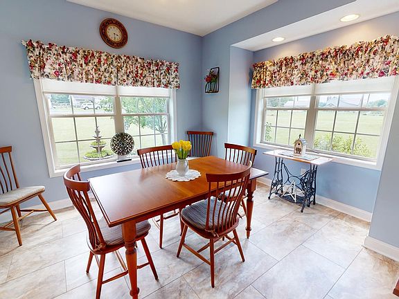 Rustic tranquility meets convenient city living in this captivating country estate. Nestled on 2.64 acres of lush land, just minutes away from town, this 5-bedroom, 2.5-bathroom home offers the perfect blend of privacy and accessibility. As you approach the brick front façade, a sense of timeless elegance washes over you. Step inside to discover an open floor plan that effortlessly combines modern comfort with classic charm. The main floor boasts a spacious owner's suite, providing a peaceful retreat at the end of each day. Upstairs, four additional bedrooms offer ample space for family and guests. Immerse yourself in nature as you wander through the beautifully landscaped yard or relax on the paver patio with its curved wall and pillars leading to steps that reveal stunning views of seven mountains in the distance. In every direction, verdant woods create a serene backdrop that invites exploration and contemplation. This property also features a two-car attached garage and an expansive 30x40 car detached garage – perfect for housing your vehicles or pursuing hobbies that require extra space. Inside, updates abound - from new flooring in the kitchen, dining area, and laundry room to state-of-the-art Bosch geo thermal heat pump system ensuring year-round comfort while minimizing environmental impact.