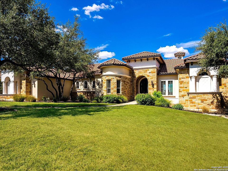Discover panoramic views of the Texas Hill Country and experience masterful craftsmanship in this single-story luxury residence, thoughtfully built by Trinity Custom Builders. Located in the prestigious, gated community of Menger Springs, this estate lot offers the perfect balance of privacy and convenience-just 5 minutes from Boerne's charming Hill Country Mile & easy access to I-10, The Shops at La Cantera, The Rim, Medical Center, and more. Inside, you'll find a spacious, beautifully designed layout featuring high-end finishes, an impressive gourmet kitchen with a dream pantry, expansive windows that bring the outdoors in, and four private ensuite bedrooms. At the heart of the home lies an entertainer's dream: a custom-designed infinity edge pool and spa with a waterfall, grotto, and dramatic gas fire bowls. Multiple outdoor patios, covered lounges, and a built-in chef's kitchen create the ultimate backyard retreat-perfect for both quiet relaxation and unforgettable gatherings. This home also offers views and access to the Menger Springs private 5 acre lake. Families will also appreciate access to the A-rated Boerne ISD school district. Don't miss the virtual tour video for more details.