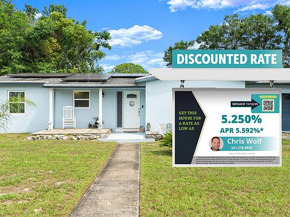 This house comes with a REDUCED RATE as low as 5.25 (APR 5.592) as of 11/12/2025 through List & Lock™. This is a seller paid rate-buydown that reduces the buyer's interest rate and monthly payment. Terms apply, see disclosures for more information. Inside, you'll find a bright and open floor plan with plenty of natural light, a well-appointed kitchen with newer appliances, granite countertops, cabinet space galore, generously sized bedrooms and a large walk in closet in the primary. The screened patio provides the ideal spot to relax or entertain while enjoying your private backyard. Located just minutes from local parks, schools, shopping, and I-4 for an easy commute to Orlando or Daytona Beach. Roof was replaced in 2021 with blown in insulation, A/C is 2023, Windows with marble sills in 2022, Water Heater in 2020, rewired electric and updated panel, plumbing relocated to attic from underground and natural gas available. Solar Panels are assumable with purchase.