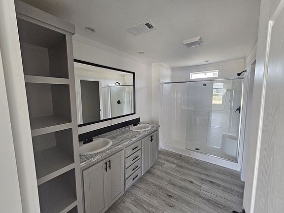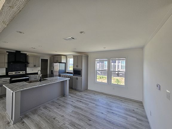 Discover the pinnacle of spaciousness and luxury in this 3-bedroom, 2-bath manufactured home. Embrace the allure of seamless flooring throughout, accentuating the modern aesthetic and ease of maintenance. Retreat to the expansive en-suite, boasting dual sinks and tiled shower, offering a serene sanctuary for relaxation. Indulge in culinary delights within the kitchen adorned with spacious counters, abundant cabinets, and a convenient walk-in pantry. Delight in the practicality of a massive mudroom/laundry room, perfect for organization and functionality. Each additional bedroom offers ample space, ensuring comfort and privacy for all occupants. **All home series, floor plans, specifications, dimensions, features, materials, pricing and availability shown on this website are subject to change.