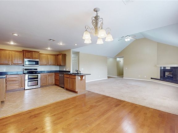 Split floor planAll brick homeOpen kitchenComfortable living spaceFenced backyardCathedral ceilings