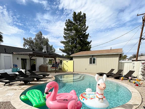 Stylish modern 4BR/3BA Scottsdale house perfect for groups & families. Ample private space. Central, convenient location. Beautiful fully updated home features brand new stunning HEATED pool, huge patio, fast WiFi, 3 Roku TVs, large grill, W/D, fridge with water filtration (huge in AZ) & 3 full baths! No more waiting for everyone else! Nice, safe neighborhood close to Old Town, Papago, Tempe. Walk to local spots. Ready for Spring Training! Pool floats, cornhole/bags, giant Jenga, Pop-a-Shot!