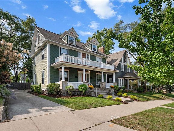This beautiful South Hill 3-Story duplex with Colonial Revivalist architecture was built as a single family home in 1905, and could easily be converted back. Lovely upper and lower sitting porches provide neighborhood views, right around the corner from Pleasant Park, just a few homes away from the Heritage Hill border--without the restrictions. The lower level is vacant and easy to show, it includes refinished original oak floors, historic trim, tasteful updates, and removable stairs (stored in basement) to the currently sealed second level—making it easy to convert back to a single-family home. The bar area on the second floor is built right over the stairway, which is still intact under the OSB. Upstairs you'll find 3 giant bedrooms, a brand new shower/tub, and an equally large finished attic space perfect for an office or yoga. The driveway provides two parking spaces. Come visit today!