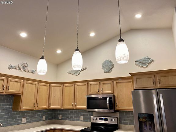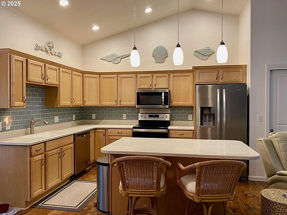 This newer stick built home is ideally located across from the Exploding Whale Memorial Park and minutes to the Old Town Waterfront area. Some of the custom upgrades include Hunter Douglas blinds and a stunning Pergola over the back patio. The kitchen has solid surface countertops and a nice island with pull outs for storage. The primary suite features a jacuzzi soaker tub with in the bathroom. The newer washer/dryer and all kitchen appliances are included. Gutter Guards are an added extra. Nestled down a small lane, backed by a natural wooded area with a partially fenced yard.