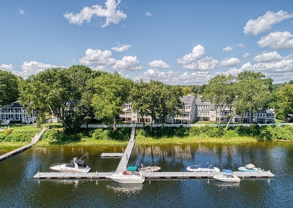 Waterfront Condo overlooking the Merrimack River! This open concept home features 6 rooms, 2 bedrooms, 1.5 baths , 2 car garage , deck and patio and Boat Dock. The cabinet packed kitchen features granite countertops and is open to the large dining room, the fireplaced living room has gorgeous views of the water and a slider to the deck, the sitting room is a perfect place to relax , watch the boats go , read a book on your window seat....Two spacious bedrooms with ample closet space, full bath and 1/2 bath with laundry. ** No dogs, indoor cats allowed with board approval***