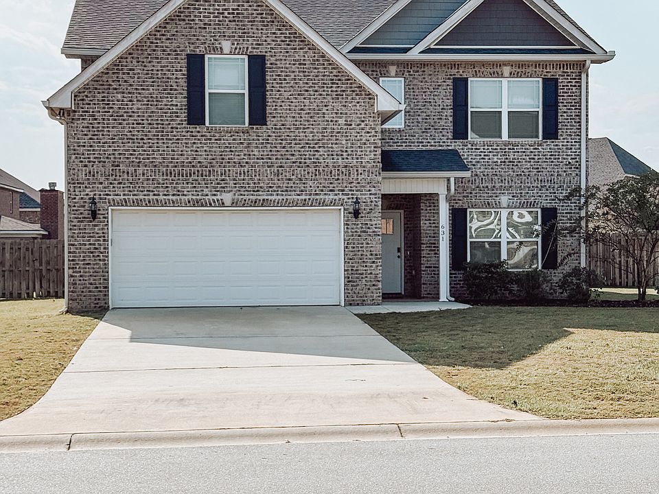 Welcome to 631 Samantha Brooke Way, a beautifully maintained all-brick two-story home located in the sought-after Harley Farms subdivision of Bonaire, GA. Built in 2020, this spacious 4-bedroom, 2.5-bath residence offers 2,456 square feet of modern living. The open-concept layout features a gourmet kitchen with granite countertops and a large island, perfect for entertaining. A formal dining room provides flexibility as a home office or additional living space, while engineered hardwood floors on the main level and plush carpeting upstairs add warmth and comfort. The luxurious primary suite includes a soaking tub, double vanities, and ample closet space. Outside, enjoy a covered patio and fenced backyard ideal for relaxing or hosting gatherings. Additional highlights include a two-car garage, underground utilities, and zoning for top-rated Veterans High School. Don't miss your chance to own this charming Bonaire gem!