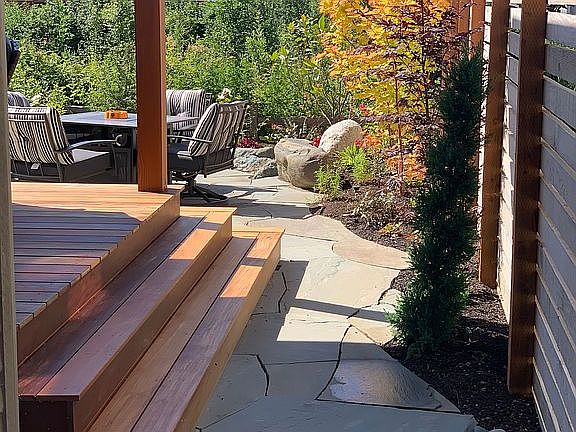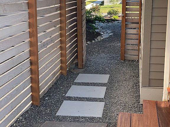 - Exterior features: Stone, Wood products, Cement / Concrete