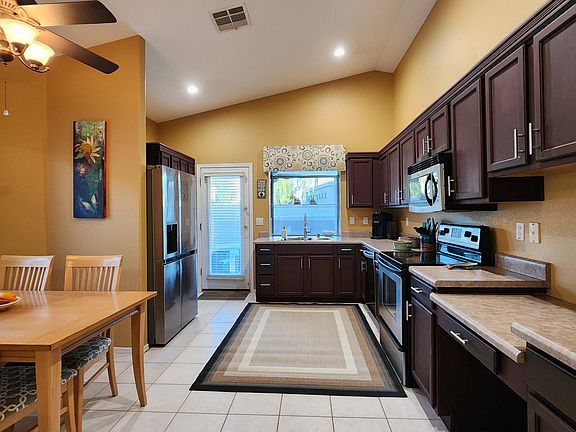 Wow! Your opportunity to own this darling home with a private pool. Tucked away in a quiet community with a community pool and two parks, surrounded by amenities galore. 10 min to Downtown Chandler or Chandler Mall. 2.6 miles from Loop 101. Plentiful nearby shopping, restaurants, entertainment options, employment & schools. Open flow between the living room, kitchen & dining area.. Enjoy relaxing while you visit, swim, BBQ & play. Low maintenance wrap-around yard w/ 3 patios & two play areas. Home has vaulted & raised ceilings, recessed LED lighting.& ceiling fans throughout. Spacious kitchen has plentiful cabinets, newer stainless refrigerator & dishwasher, & bay window to the backyard. Primary bedroom has views to the backyard & primary bath has a garden tub and walk-in closet.