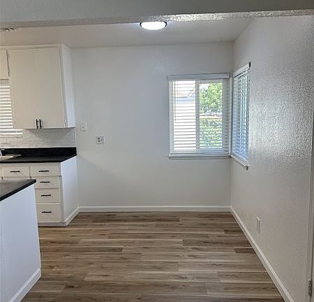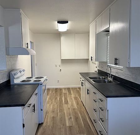 Updated 2 bedroom 1 bath single story home with approximately 890 SQ. FT. of living space. Kitchen with new laminate countertops, tile backsplash, new electric range and dining area. Spacious living room. Bathroom with a shower tub combo. Inside laundry hookups. Fenced backyard. Additional storage room at the carport. Central heat and air. 1 car covered carport. New interior paint and laminate flooring throughout. Centrally located next to downtown, shopping and highway 99. 1 pet under 40 lbs. negotiable, please see applications for breed restrictions, picture of pet required with your application.