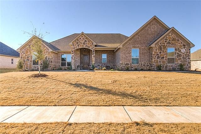 New construction Pecan Plantation located in newest phase Park Place on oversized lot. 4 bedroom, 3 bath, study with French doors. Desirable open floor plan, beautiful tile. Large living room abundant natural light, high ceiling with crown. Upgraded lighting. Gas fireplace, stone accent. Kitchen heart of the home, large & open. Gorgeous custom Knotty alder cabinets. Breakfast area, amazing walk in pantry & prep area, upgraded granite, island, stainless doubleoven. Large master. Separate shower & garden tub, dual sinks, walk in closet. Split bedrooms. Laundry with sink. Full 3 car garage. Covered front & back porch. Sprinkler system. Impressive stone & brick exterior. Wonderful location convenient to everything!