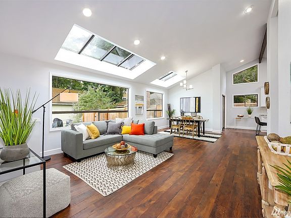 Modern + Romantic beautifully remodeled 4 bedroom/2.5 bath home minutes to Alaska+Morgan junctions or a short walk to Lowman Beach. Stunning open floor plan flooded w/sunlight, oversized windows, vaulted ceilings, & skylights. Thoughtful brand new gourmet kitchen + dining + great room w/granite counters, high-end SS appliances perfect for indoor/outdoor entertaining. Completely renovated in the coveted part of Seaview complete w/ your own Spa Sauna..do not miss it!