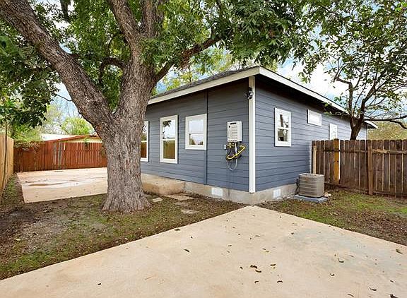 Beautifully remodeled, very unique property just minutes from Downtown! Extra tall original shiplap ceilings make this unit unlike any other in the area. Lives like new construction! All new windows, cabinets, quartz counters, marble shower, stainless appliances with fridge included. Large kitchen with lots of counter and cabinet space. Private, fully fenced yard with patios for grilling or entertaining. Private laundry in Master. Easy access to East Riverside and 183, just 2 miles from East Cesar Chavez!