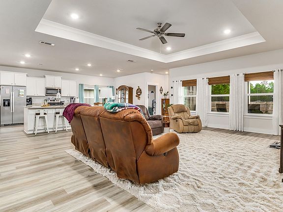 Welcome to this beautiful 4-bedroom, 3-bath home with 2,304 sq ft of living space in the desirable Forest Bay Estates of Gulf Breeze. Comfort, style, and convenience come together in an open-concept design perfect for easy living and effortless entertaining. The heart of the home features a grand living room with a tray ceiling that flows seamlessly into the kitchen and dining areas. The kitchen is a standout with granite countertops, stainless steel appliances, a large island bar, corner pantry, and plenty of space for gathering around the breakfast nook or hosting in the formal dining area. The primary suite includes a generous walk-in closet and a spa-inspired bath with double granite vanities, a garden tub, and a separate shower. Three additional bedrooms and two full baths provide comfort and flexibility for guests or a home office. Outside, enjoy a covered patio overlooking the fenced backyard, plus a three-car garage ideal for a small car, golf cart, or extra storage. Just minutes from top-rated schools, shopping, dining, and the pristine white-sand beaches of Pensacola and Navarre, this home truly has it all.