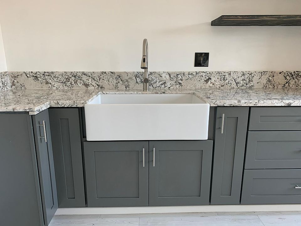 Chef kitchenFarm sinkWalk in closetClay fire farm sinkVinyl floorsMarble kitchen counter topLarge bedroom