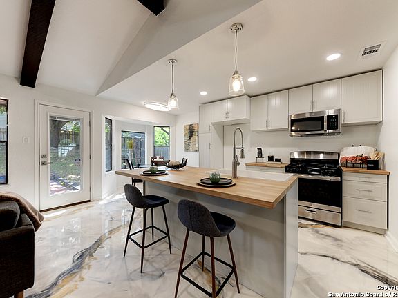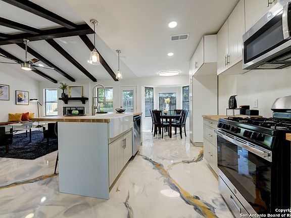 Motivated seller! Welcome to this beautifully renovated home in Leon Valley, featuring 4 bedrooms and 2.5 bathrooms. This spacious residence offers the perfect blend of comfort and style. The inviting living area, highlighted by a charming wood-burning fireplace, creates a cozy atmosphere for family gatherings. The living room ceiling featuring rustic wooden beams enhances the sense of space and elegance. The contemporary kitchen is equipped with modern conveniences making meal preparation a pleasure. The primary bedroom is a tranquil retreat, complete with a an ensuite bathroom. Additional highlights include custom flooring throughout, exquisite curb appeal, and an impressive backyard, perfect for entertaining or enjoying serene moments. This exceptional home combines luxury and functionality in a desirable location- Schedule a tour today!