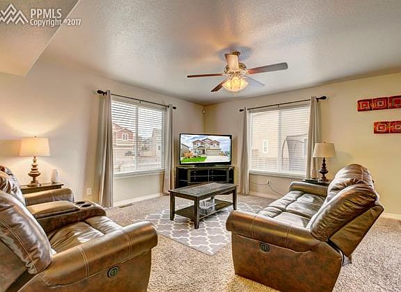 Beautiful 4 Bedrooms, Office/Study on main, 3 Baths, Spacious 2 car Garage!! Nice Sized Family Room Opens to a Large Kitchen with Pantry, Island, Stainless Steel Appliances, and Eating Area. Upstairs Features a Master Bedroom with Adjoining 5 Piece Bath & Large Walk-In Closet, 3 Additional Bedrooms and Laundry Area. . Basement is unfinished. This home also features fenced backyard with auto sprinkler system and A/C. You don't want to miss this one! Close to Fort Carson, Peterson AFB, Schriever AFB, and the Powers Corridor with Plenty of Shopping, Restaurants, and a Movie Theater. This is a Must See!!