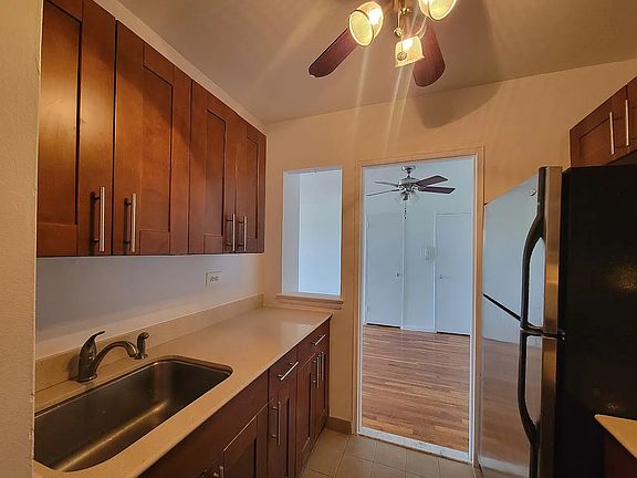 The clear separation between the living and sleeping spaces ensures an ideal layout that maximizes functionality. The bedroom, adorned with two windows, invites ample natural light to fill the space, accentuating the beauty of the hardwood floors. A generously-sized closet provides ample storage, allowing you to keep your personal belongings neatly organized. The kitchen boasts modern stainless steel appliances and plenty of cabinet space, ensuring convenience and functionality for all your culinary needs. The bathroom showcases updated and contemporary fixtures, while two spacious closets in the entry provide additional storage options.