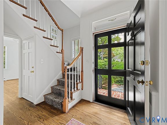 Don't miss the opportunity to own this light-filled home situated on a private, deep lot near the Country Club of Virginia. With 4 bedrooms and 3 full baths, the first floor offers an open and versatile floor plan - ideal for both casual and formal entertaining - with an easy circular flow throughout. The foyer with turned staircase leads to the formal dining room with dentil molding; the living room with gas fireplace has a wide doorway with a transom above and opens to the window-filled family room with gas fireplace + cabinetry & shelving. The updated eat-in kitchen has a 6 burner Wolf range with 2 ovens, Subzero & 3 Fisher-Paykel dishwasher drawers. There is counter seating and a bar area with wine refrigerator, gas fireplace and a desk area with shelving. Option for one floor living with 2 bedrooms and a renovated bath on the first floor. Covered side entry with coat closet leads to the driveway. The second floor has a primary suite with sitting/dressing room & full bath plus additional bedroom with renovated hall bath with a lovely marble and tile shower. A spacious deck overlooks the fenced rear yard. Utility basement with good storage. Front irrigation. Newer A/C units. Minutes from University of Richmond and the shops at Libbie and Grove.