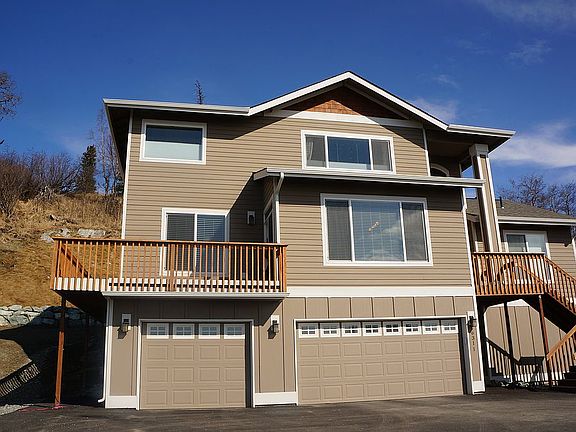 Beautiful 5 star+ South Anchorage home built in 2013. 4 bedrooms all with spacious WIC, granite/quartz and tile throughout kitchen and 3 bathrooms. Hickory hardwood floors throughout the majority of the home. Gourmet kitchen with views that will take your breath away. Stainless steel appliances, 9 ft+ ceilings, 3 car garage with extra storage space. Custom built in speakers theater room. New extended deck wired to accommodate hot tub and easy back garden access. Extensive landscaping with custom built staircase to viewing platform for spectacular views