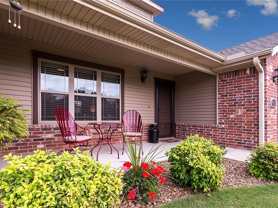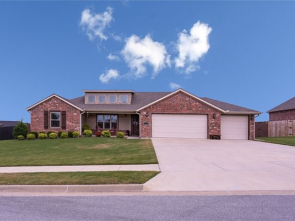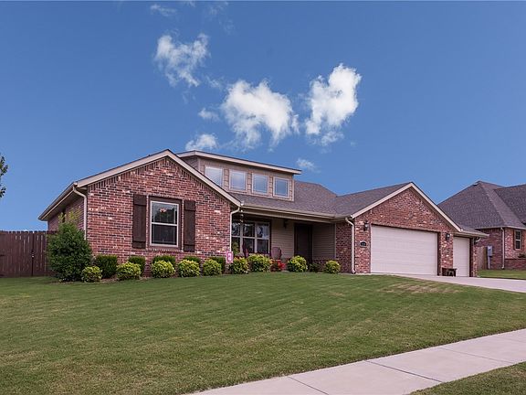 Stonecreek Sub has that country feel, 4 bd 2ba 3car garage. Features include open floor plan, split bedroom, wood ceiling in living room, granite, birch cabinets, kitchen island, gas fireplace, blinds, gutters, epoxy farage floors, wired for sound/security, 2 covered porches, and large lot!! Workshop, shed, and storm shelter, plenty of room for garden. Minutes to wal-mart home offices, shopping, hospital and all NWA has to offer.