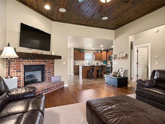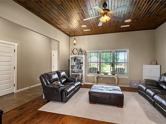 Gorgeous home on a large lot in Stonecreek Sub & has a country feel. Living area has an open floor plan, wood flooring, wood ceiling, gas fireplace, and built-in surround sound speakers. Spacious kitchen has granite counters, , island, tiled backsplash, eat-in, & stainless steel appliances. Master has tray ceiling, walk-in closet, and bath with dual vanity, soaker tub & separate walk-in shower. Sit out and enjoy the large covered covered porch. Huge fenced-in backyard space with inground storm shelter, plenty of space for a garden, & large workshop building. Gutters, epoxy garage floors. Minutes to Walmart home offices, shopping, hospital and all NWA has to offer. Don't miss this wonderful home!