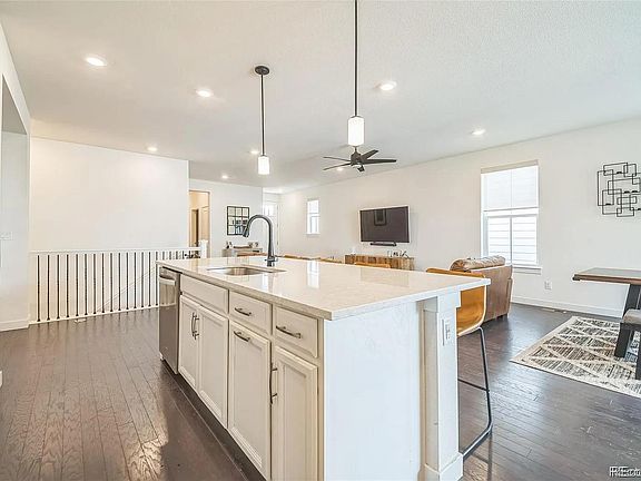 Mortgage assumption available to qualified buyers at 4.99% interest rate for about four years contingent on closing date. Move in ready and newly built home! This beautiful home features a lovely stone exterior, attached 2-car garage and a Colorado modern twist. The spacious finished basement includes an expansive rec room, bedroom, and full bathroom. Step through the side entry to discover an open floor plan with 9-ft. ceilings, upgraded living area flooring and a spacious great room perfect for gatherings. The large kitchen showcases 42-in. upper cabinets, quartz counter tops and stainless steel appliances. A den with French doors offers the ideal space for a private home office. The primary suite, located at the back of the home for added privacy, boasts a walk-in closet and connecting bath with upgrades throughout and an expansive shower. Humidifier installed. Newly installed beautiful shades and curtains. Enjoy all Colorado seasons on the rear covered deck. 4 bed, 3 bath, finished basement, office. Lot size 5060 sq ft. Master planned community. Easy access to community amenities including pool, fitness center, coffee house, the canyon house, 15 miles of trails. Commuter friendly; near I-25. Douglas County School District. Close to Outlets at Castle Rock and Park Meadows for shopping, dining and entertainment.
