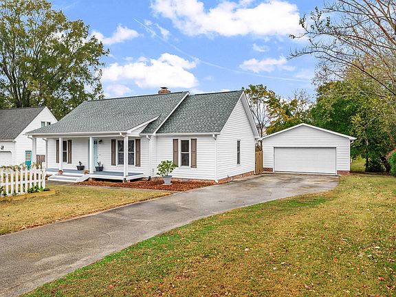 Charming, updated, and move-in ready — this 3 bedroom, 2 bath ranch sits on nearly half an acre with NO HOA in a prime Wake Forest location. Recent updates include new vinyl siding, vinyl-wrapped porch columns, new back door, and a beautifully renovated kitchen featuring new cabinets, quartz countertops, stainless appliances, sink, and flooring. Both bathrooms have been refreshed, including new fixtures, LVP flooring, and wainscoting in the main bath. Outside, the large, flat, fenced backyard offers space to play, garden, relax, or entertain. The detached 2-car garage (500+ sq ft) is insulated and powered, making it truly versatile — perfect for workshop, home gym, craft space, game room, movie hangout, or storage, with year-round usability when supplemented with a window unit or space heater. A rare combination of updates, usable outdoor space, storage, and freedom — all on one level and close to everything Wake Forest has to offer.