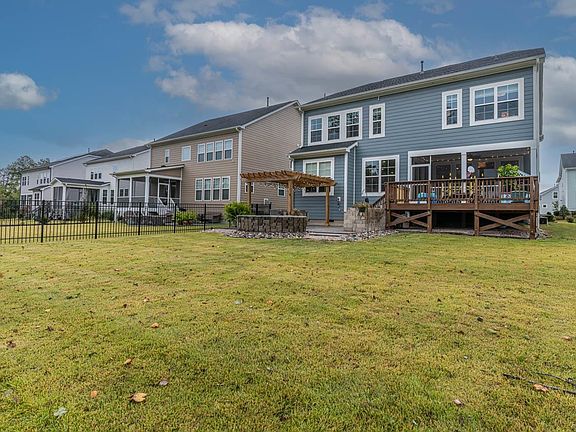 Come live the good life! Openness, natural light and custom features add to the charm of this lovely Lennar built home. The Galvani II is a five bedroom, four full bath two-story home. First floor engineered hardwood floor main areas. Home office with French doors is located off the entry. The kitchen with quartz countertop seating and island open to the spacious living room. The formal dining room and breakfast nook make for a great dining experience. Guest suite with private full bath is located on the first floor. Mud room and walk in pantry located off garage entry. Upstairs features a large bonus room to play or relax. The upstairs primary suite includes trey ceiling, sitting area, dual vanities, two walk-in closets, tile shower, and a garden tub. Three additional bedrooms and two full baths on second floor. The back yard features a screened porch, deck, large patio with kitchen area, gas fire pit with seating, pergola, and a large yard. See attachments for upgrades. 5401 Community features commercial space, farm, clubhouse, pool, playgrounds, gym, dog park, greenway trail, kayak launch, & HOA cuts grass.