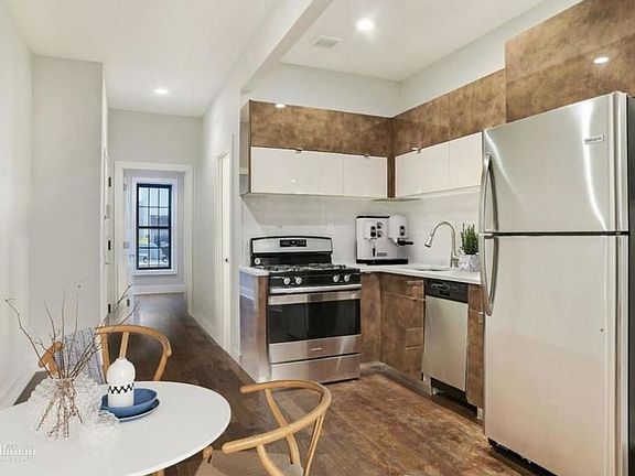 This Duplex Unit was gut renovated with sleek design and modern finish. It has 4 bedrooms and 2.5 bathrooms. Huge private back yard. Stylish living spaces featuring beautiful hardwood oak floors, high ceilings, lots of natural sunlight, split ductless cooling systems in every room. Chicly designed bathrooms, rounded off with stylish kitchens with custom cabinetry and stainless steel appliances, including dishwasher. Laundry in the building. Perfectly situated 6312 Fresh Pond Road is in the center of Ridgewood surrounded by great dining, local shops. Transportation: M train at Fresh Pond Road is just a mere 6 blocks, allowing for an easy commute to Manhattan.