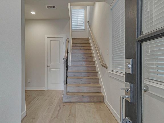 Welcome to this three-level residence by City Choice Homes featuring a private yard and exceptional location near the city’s most desired dining, parks, and recreation. Enjoy walkable access to pickleball and tennis courts, open fields, playgrounds, and green spaces, all just minutes away. This home showcases timeless style with 3 bedrooms, 3.5 baths, and an oversized covered balcony. Step inside to engineered Swiss flooring. The first level offers a welcoming foyer and en-suite guest suite. The second level impresses with a sunlit Great Room spanning over 30 feet, opening to the balcony, and a chef’s kitchen with top-tier appliances, shaker cabinetry, quartz countertops, and an expansive island with seating, and a dining area. The third level features the owner’s suite, secondary en-suite bedroom, and utility room. The owner’s retreat includes 10’ coffered ceilings, a large walk-in closet with built-ins, and a spa-like bath with dual vanities, soaking tub, and glass-enclosed shower.