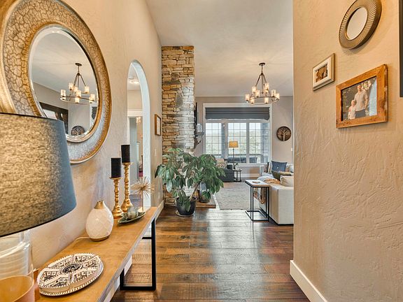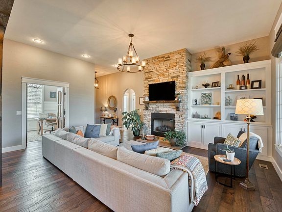 Welcome to 6313 South Weatherwood Trail, an exquisite home nestled in the highly sought-after Rivercut subdivision. Backing up to serene woods, this 5-bedroom, 3.5-bathroom home offers 4,420 sq ft of thoughtfully designed living space, plus an impressive 663 sq ft John Deere/storage room.The heart of the home is an open-concept kitchen and living room featuring a stunning stone gas fireplace flanked by custom built-ins. The kitchen boasts granite countertops, a large island, gas cooktop, double ovens, a newer dishwasher, and a spacious walk-in pantry. A kitchen/dining combo opens to a covered back deck--perfect for indoor-outdoor entertaining.Just off the kitchen, the luxurious primary suite offers private access, a spa-like bath with dual vanities, a walk-in shower with dual heads, and a generous walk-in closet that connects conveniently to the laundry room with granite counters and a sink. A split-bedroom layout on the main level includes two more bedrooms with walk-in closets and a shared full bath.Downstairs, enjoy a large second living area complete with a wet bar and a second stone gas fireplace. Two additional bedrooms--one with an ensuite and the other currently serving as a home gym--plus a full bathroom and extensive storage space round out the lower level. Walk out to the covered patio and fully fenced backyard with a flattened landscape area ideal for a firepit.Additional highlights include a formal dining room or office with French doors, a 3-car garage, irrigation system, and direct access from the basement to the beautifully landscaped yard.This home truly has it all--space, style, functionality, and a picture-perfect setting.