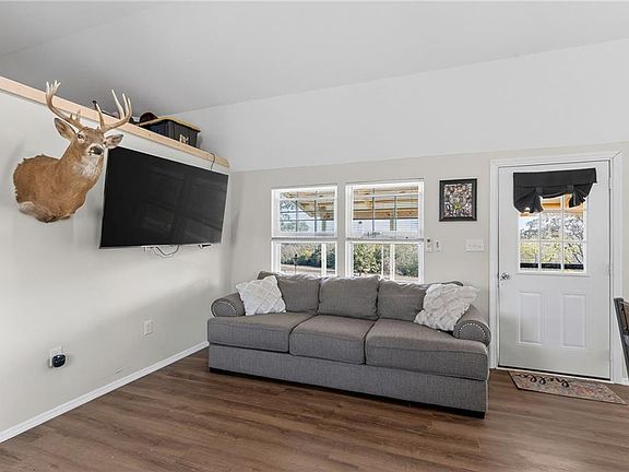 Discover this charming 16x54 finished cabin on 5 acres, just ¾ mile off Hwy 116. Set on an oversized concrete pad with a front porch to enjoy stunning sunsets, this property is perfect as a full-time residence, weekend getaway, or hunting cabin.