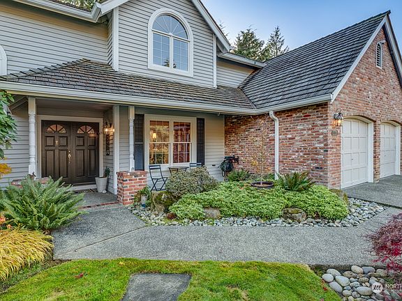 Experience enchanting Picnic Point neighborhood, serene/private, lovely cul-de-sac w/tree lined sidewalks, manicured lawns, offers the perfect blend of space & style. Well-maintained home has traditional circular floorplan greets you w/vaulted ceilings, flanked by living & dining areas, features a refreshed kitchen, new backsplash, counter tops & SS appliances. Entertaining is easy flowing from kitchen to family room w/bewitching gas fireplace. Spacious primary suite a luxurious retreat, complete w/vaulted ceiling, walk-in closet & oversize window flooding with natural light. Yard offers a private sanctuary of beautifully curated gardens & relaxing patio spaces. Cedar shake roof has been meticulously cared for & 1yr young furnace/heat pump.