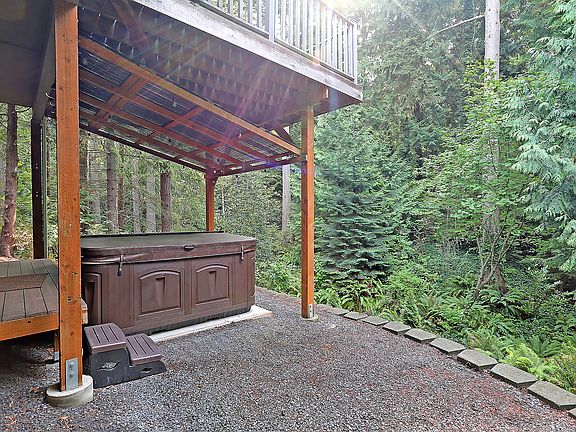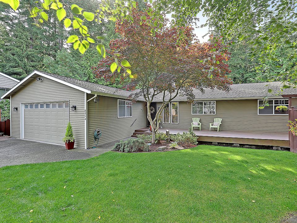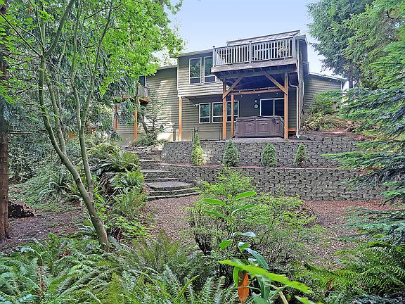Daylight rambler tucked back from the cul de sac with a very private park like setting back yard. Enjoy BBQ on your back deck or sitting out on the new composite front deck. Large hot tub off of composite deck in the backyard. New high end Pergo flooring on main level, remodeled kitchen with SS appliance and granite countertops. New furnace in 2012, new water heater 2010, new composite roof 2007.