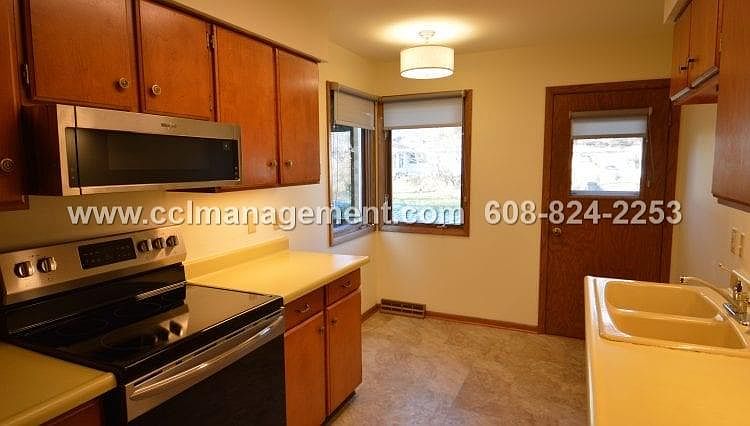 Rent this spacious duplex on the West Side of Madison. Convenient Location near Mineral Point between Gammon and Whitney Way. This duplex has been freshly painted and features brand new appliances. It opens with a spacious living room with a wood fireplace, built in shelving and a dining area. The fully equipped kitchen is off the back with stainless steel appliances and an attached dinette with a walkout to the back patio. Down the hall are 2 bedrooms with a full bath to service them. The finished basement offers a large family/rec room, a 2nd full bath and laundry facilities. A large storage area is also on the level. Outside this unit has a 1 car garage and a back patio. LAWN CARE INCLUDED! SORRY NO PETS. Muir, Jefferson and Memorial High School. AVAILABLE JANUARY 15TH! ADDITIONAL FEATURES 1 Car Garage, Washer and Dryer, Ample Dry Storage, Back Patio, Central Air, Dishwasher, Finished Lower Level, Fireplace, Lawn Care Provided, Main Level Bedroom, Next to a Park, Private Entrance, Professionally Managed and Stainless Steel Appliances! 12 Months +