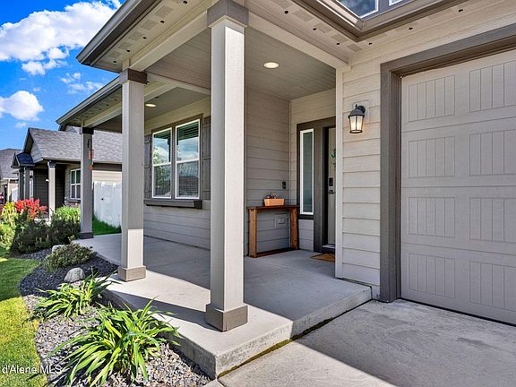 Entertainers dream home! This beautiful home offers the perfect balance of space, luxury, and functionality. Designed for those who loved to entertain. The open-concept living area invites natural light to flood the home creating a warm and inviting an atmosphere. The formal dinning room is highlighted by a custom built table that seats up to 16 people, making it an ideal space for hosting dinner parties and family celebrations. The kitchen is a chef's dream, featuring stainless steel appliances and granite countertops, with an easy flow into the living room and outdoor space. Step outside to a large patio, gazebo and a fun outdoor bar in the shed, creating a perfect venue for summer gatherings. The master suite is a serenity retreat, offering a granite surround fireplace, walk-in closet, and a luxury en suite bath with jetted soaking tub. Additional upgrades include granite countertops in the laundry room, coffee bar, and bathrooms, enhancing the homes elegance. And additional solar panels for lower utilities. Set in a quiet neighborhood with a landscape yard for privacy. This home is close to the growing area, with convenient access to both Coeur d'Alene and Spokane.