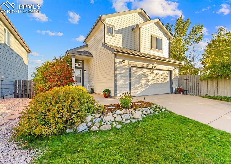 Come and explore this stunning home set on a cul-de-sac with a one-of-a-kind OVERSIZED lot featuring a beautifully landscaped secret garden like outdoor entertainment space. Walking inside you'll be greeted with soaring ceilings in the living room, perfectly framed by a gas fireplace with a custom built-in display. Luxury vinyl flooring extends throughout the main level, leading from the living and dining areas into the showstopping kitchen. The professionally upgraded kitchen will truly dazzle you with calcite countertops (an upgrade from traditional granite), custom cabinets with soft-close features and under-cabinet lighting, stainless steel appliances, a beautiful glass backsplash, and a pantry. The dining nook in the kitchen features a large picture window —which was added by the sellers— that overlooks trees and the stunning yard with vibrant fall colors. This window, along with the sliding patio doors that open to the back deck, fill the space with abundant natural light. Step onto the deck overlooking a green lawn, then explore further to discover a gate opening to a stone pathway with stunning landscaping. This leads to an additional expansive lawn with a stone patio, gazebo, and two storage sheds. This one-of-a-kind yard is unique to this lot, making it truly special. Plus, a large utility gate in the fence provides space to accommodate a trailer or trash cans from the curb. Back inside, move upstairs to find the primary suite with an en-suite bathroom featuring a double vanity, tub/shower combo, water closet, and walk-in closet. The upper level also includes two additional bedrooms and a full bathroom. The walkout basement offers a perfect space for family movie or game nights, along with a fourth bedroom with en-suite access—ideal for guests or a home office. Located in the coveted Stetson Hills area, enjoy close proximity to entertainment, dining, and shopping right off Powers Blvd. This home shows pride of ownership throughout and is a true gem!