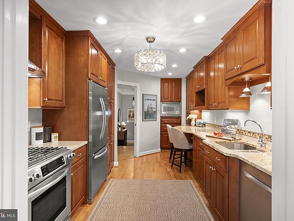 Welcome to 6315 Chaucer Lane, a nicely upgraded 3 bedroom, 3 full bath, 1-car garage TH with 3035 finished sq.ft. This TH is in the Landmark Mews community located at the West End of Alexandria. The Community offers a Park-like setting, while still providing immediate access to 395/Beltway/95, with proximity to the Pentagon, DC, Reagan National airport, and Old Town Alexandria. Landmark Mews is 5 minutes from the $2.2 Billion WestEnd Alexandria development project, which will include the new Inova Alexandria Hospital Campus. This combination of house, Community, and location features are rarely found Inside the Beltway. To learn more about Landmark Mews, check out the Property website/virtual tour and the Listing Agent's Living in Landmark Mews website. If you are viewing the non-branded version of the Property website, ask your agent for the URLs to both the branded Property website (for the Community and WestEnd Alexandria project videos) and the Living in Landmark Mews website, which is a comprehensive source of visuals and information on choosing the Community as your Home. The Landmark Mews website also includes the referenced Community video with spectacular aerial views and videos/info on restaurants, shopping, and other "Livability" benefits from proximity to everything. House Details: This four-level home has upgrades throughout, both inside and exterior, which make this house truly move-in ready to enjoy as your new home. A curved brick walk leads to this brick front TH. The front landscaping is designed and installed by Merrifield Garden Center. From the front door, you are a 30-second walk to the 1-acre central Commons in the Community with walking paths, benches, and mature trees and landscaping. The home opens to a tiled entry with a 12-foot ceiling, then on to the beautifully remodeled kitchen with added cabinets, granite counters, newly refinished wood floors, and stainless appliances with a stainless hood over the gas cooktop. The Living and Dining Rooms on the Main Level have wood floors laid on the diagonal. A wood burning fireplace is located in this area. The deck is accessed from the Main Level through an upgraded slder door. The deck steps down to a paver patio. The rear area is surrounded by a recently stained fence. The half bath on the Main Level has been fully remodeled. The bedroom level has two Owner's Suites, each sized to make a King bed look small. Both bedrooms have en suite bathrooms with a large walk-in closet. The 1st Owner's Suite has a beautifully remodeld bathroom with high-end featues and finishes, including a large walk-in shower & heated floor. The walk-in closet for this bedroom has a California Closet storage system. The 2nd Owner's Suite is currently set up as an Office. The en suite bathroom is also nicely remodeled in full. The Upper Level has the 3rd bedroom, with a walk-in closet. The 3rd full bedroom serves this bedroom. This level has two large walk-in attic storage spaces. The Lower Level has the 2nd fireplace, full bar with granite tops, an upgraded 2nd half bath, & the laundry room. This level has a walk-in storage area. All light fixtures in the house have been upgraded. All house windows are Pella replacement windows. The house has a central vacuum system. The garage has an epoxy floor covering. The HVAC systems are 2014 and 2016. The water heater was installed in 2022. The roof was installed in 2011.