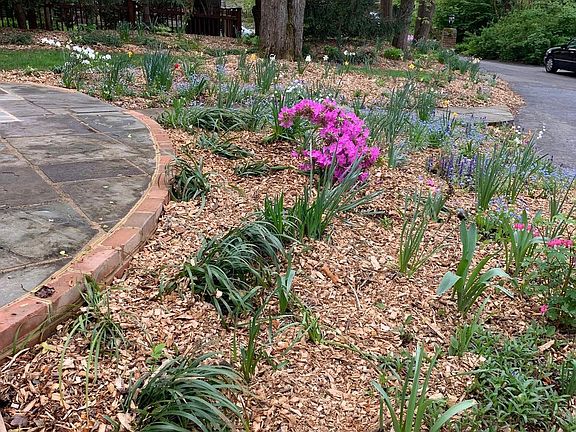 Wood burning fireplaceTwo-level lawnHundreds of perennialsIdyllic settingLarge showerExtensive flower bedSpacious and inviting foyer