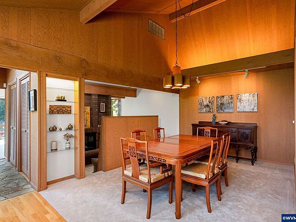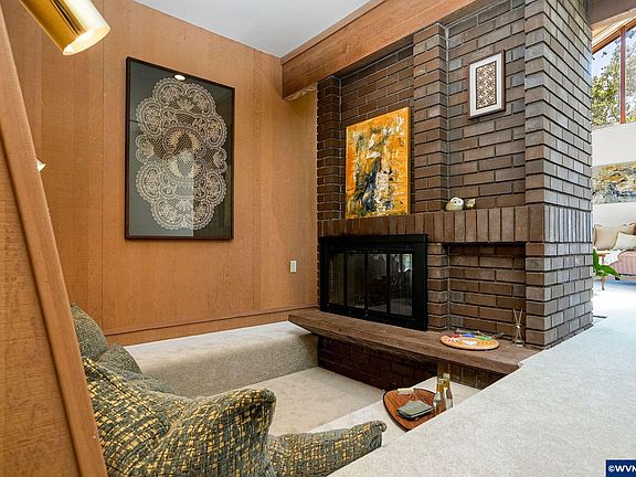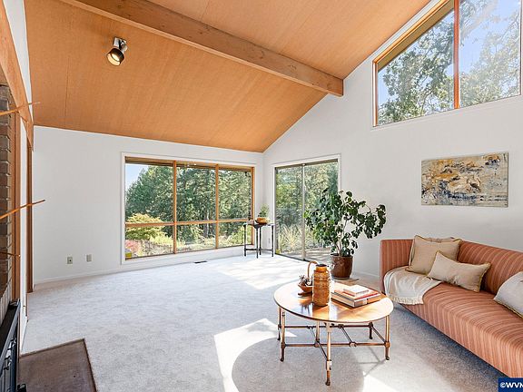 Tucked into the forested NW corner of Corvallis, this architect-designed home blends character and warmth with vaulted ceilings and walls of windows framing wooded views. A sun-filled kitchen with window seat, gas FP in living and conversation pit, family room, and abundant storage. The primary suite opens to a large deck with sauna and hot tub; plus exercise area. A truly unique retreat in a coveted location. Seller is a licensed broker. Circular staircase leads from family room to primary. Walk-in pantry. Bonus room off laundry area. Loft.