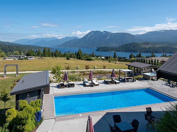 This custom 10,000+ sq ft log home showcases impeccable interior finishings and quality throughout. No expense spared—featuring three large self-contained licensed luxury B&B suites with amenities such as a full gym, private patios, massage rooms, lock-out access from the main living space, plus separate laundry and supply storage. The property offers 2,200 fruit trees nearing maturity, pickleball court, outdoor pool, hot tub, washrooms, a large gazebo for alfresco dining, two shops, and gated driveway. Inside, floor-to-ceiling windows frame sweeping ocean views of Sechelt, anchored by a spectacular fireplace. Despite its size, the home retains a cozy feel. A state-of-the-art kitchen with top-end cabinetry and custom built-ins elevates the living experience. Pls request feature sheet.